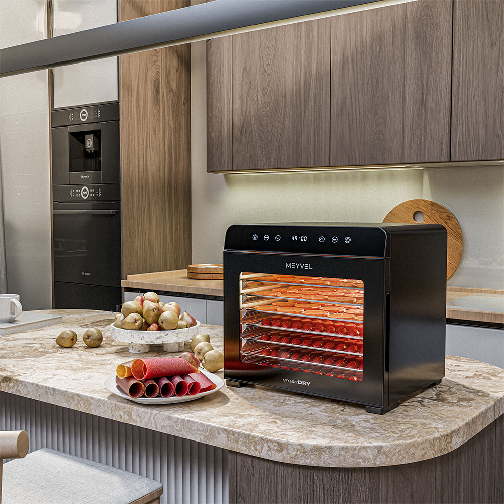 Meyvel MDH8-2S (Black) — современный дегидратор для ценителей натуральных продуктов, которые хотят готовить полезные заготовки без лишних усилий. Это мощное устройство с продуманным функционалом и стильным дизайном подойдёт и любителям, и профессионалам.