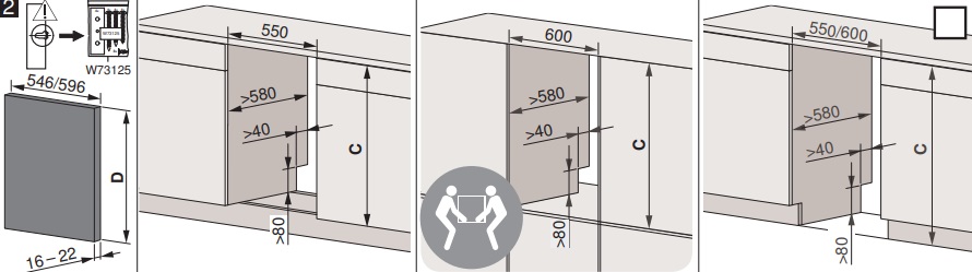- Габариты ниши для встраивания ВхШхГ, мм: 851-967х600х580