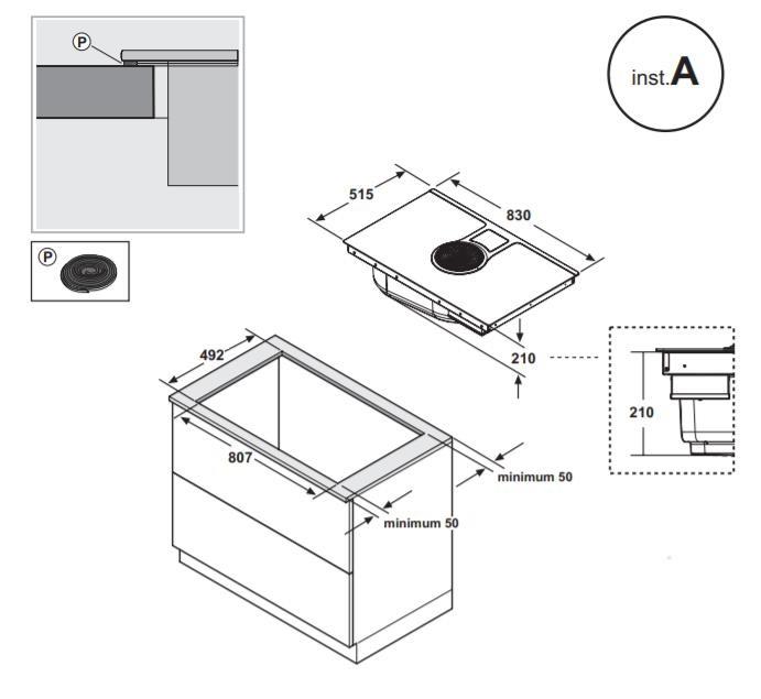 Индукционная варочная панель Elica NIKOLATESLA HP BL/F/83 устанавливается для работы в режиме фильтрации. В таком случае воздух проходит через керамические угольные фильтры и выходит обратно в помещение через решетку, установленную в кухонном цоколе.